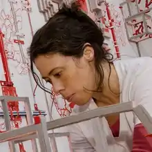 Diana Cooper (born 1964) is an American visual artist, known for largely abstract, improvised hybrid constructions that combine drawing, painting, sculpture, installation and photography.[1][2][3] Her art has evolved from canvas works centered on proliferating doodles to sprawling installations of multiplying elements and architectonic structures.[4][5][6] Critics have described her earlier work—primarily made with craft supplies such as markers, pens, foamcore, pushpins, felt, pipe cleaners, tape and pompoms—as humble-looking yet labor-intensive,[7] provisional and precarious,[8] and "a high-wire act attempting to balance order and pandemonium."[5] They note parallels to earlier abstract women artists such as Eva Hesse, Lee Bontecou, Elizabeth Murray, and Yayoi Kusama.[9][10] Lilly Wei, however, identifies an "absurdist playfulness and Orwellian intimations" in Cooper's work that occupy a unique place in contemporary abstraction.[1]