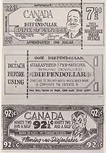 Diefenbaker's father, William, was a Liberal; however, John Diefenbaker found himself attracted to the Conservative Party. Free trade was widely popular throughout Western Canada, but Diefenbaker was convinced by the Conservative position that free trade would make Canada an economic dependent of the United States.[23] However, he did not speak publicly of his politics. Diefenbaker recalled in his memoirs that, in 1921, he had been elected as secretary of the Wakaw Liberal Association while absent in Saskatoon, and had returned to find the association's records in his office. He promptly returned them to the association president. Diefenbaker also stated that he had been told that if he became a Liberal candidate, "there was no position in the province which would not be open to him."[24]