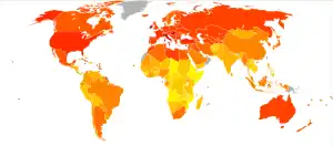 The dietary energy supply is the food available for human consumption, usually expressed in kilocalories or kilojoules per person per day. It gives an overestimate of the total amount of food consumed as it reflects both food consumed and food wasted.[1] It varies markedly between different regions and countries of the world. It has also changed significantly over the 21st century. Dietary energy supply is correlated with the rate of obesity.[2]