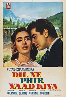 Dil Ne Phir Yaad Kiya (transl.The heart reminded once more) is a 1966 Bollywood film.[1] It stars Dharmendra, Nutan, Rehman and Jeevan. The music is by Sonik Omi. It has double role of both Dharmendra and Nutan.
