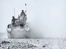 At dusk on 17 November, Regimental HQ and A Squadron advanced to El Beida; C Squadron bivouacked at El Rabta and B Squadron screened the 7th Indian Infantry Brigade as it advanced towards Bir Gibni. C Squadron crossed the frontier towards Bir Gibni the following day, joined by Regimental Headquarters and A Squadron later in the morning. B Squadron patrolled the Indian brigade's flank near Bir Gibni and was fired on by German Panzer III tanks. One Panzer III was disabled by 2-pounder anti-tank guns, and was towed away by a retreating Panzer. B Squadron pulled back a mile at night and laagered. At 15:00 on 19 November, the regiment advanced towards Bir Gibni, with C Squadron forward and A Squadron in reserve. C Squadron reached the Trigh el Abd and observed the British 4th Armoured Brigade fighting a battle group from the 21st Panzer Division. B Squadron was transferred back to regimental command late on 19 November, after providing flank support to the 7th Indian Brigade.[42]