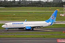 Following the shutdown, Dobrolet aircraft were transferred to Orenair, and put into service on that airlines' routes. Boeing 737-800 (VQ-BTG) is seen here at Düsseldorf Airport on 18 August 2014 in a hybrid Dobrolet-Orenair livery operating an Orenair flight.