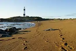 After long discussions, the island was chosen as Southland's first site for a lighthouse; the recommendation was made by the Invercargill Harbour Master to James Alexander Robertson Menzies, the first Superintendent of the Southland Province.[3] The lighthouse was designed by James Balfour, at the time marine engineer to the Otago Provincial Council and later to the Colonial Government of New Zealand,[4] at a total height of 36 metres (118 ft); due to the low-lying nature of the island, the lighthouse had to be quite tall to be effective.[5]