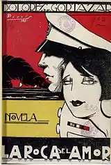In literature Gortázar obtained her biggest success as a novelist, the author of El Cristo de la roca (1911) and La roca del amor (1924).[45] Both are in fact one and the same novel, the latter slightly re-edited to provide a sense of novelty;[46] the disguise proved successful, as in contemporary press La roca was acknowledged as original.[47] The novel is a love story, vaguely set in a milieu of Valencian aristocracy; it features a complex family intrigue. The plot is about overcoming a series of mysterious tragedies and misfortunes; Christian backbone of the protagonists, one of them a Catholic priest, enabled them to succeed. Falling into the typical genre fiction of the era, El Cristo / La roca is perhaps most interesting due to its narrative technique, as the story is made of different recollective accounts. Other Gortázar's prosaic attempts, a shorter novel[48] and a collection of stories,[49] were far less successful.[50]