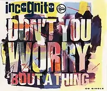 "Don't You Worry 'bout a Thing" is a song by American singer-songwriter Stevie Wonder, released as the third single from his sixteenth studio album, Innervisions (1973). It reached number 16 on the US Billboard Pop Singles chart, number 10 on the Cash Box Top 100,[2] and number two on the R&B chart. The song's lyrics convey a positive message, focusing on taking things in one's stride and accentuating the positive. In 1992, British band Incognito had a European hit with their cover of the song.