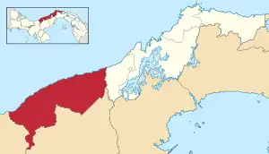 Donoso District is a district (distrito) of Colón Province in Panama. The population according to the 2000 census was 9,671;[2] the latest official estimate (for 2019) is 14,798.[1] The district lies along the Caribbean coast in the west of the province and covers a total area of 1,826 km². The capital is the town of Miguel de la Borda.[2]