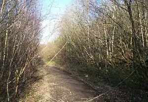 Poking through the undergrowth on the right are the remnants of Dovecliffe Station platform.