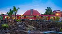 Built over a plinth area of 8,285 square feet (769.7 m2), the memorial has a semi-circle dome with a diameter of 55 ft. About a dozen photographs of Ambedkar are kept in display, including Ambedkar with Periyar E. V. Ramasamy and his participation in the First Round Table Conference in London in the 1930s.[2]