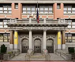 Dr. Ronald E. McNair Academic High School (often dubbed Academic previous to its dedication, or as McNair) is a magnet public high school located at 123 Coles Street in Jersey City, in Hudson County, United States. The school is named in memory of Dr. Ronald E. McNair, the astronaut and scientist who died in the Space Shuttle Challenger disaster. McNair is part of the Jersey City Public Schools district. The school has been accredited by the Middle States Association of Colleges and Schools Commission on Elementary and Secondary Schools since 1979 and is under Probationary Accreditation status as of 2022.[4]