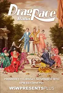 7. 1 2 "Ciao Italia". Drag Race Italia. Season 1. Episode 1. November 19, 2021. Discovery+ / WOW Presents Plus.
