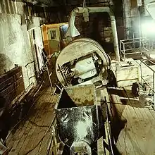 It is assumed that in June 1945 the mine was flooded up to its natural outlet above the Fürstlicher Stollen. [2] Production could not therefore be resumed at first, despite urgent requests, for example from Central German Rayon (Mitteldeutsche Zellwolle). They made do with low grade ore that still lay on the tip. By expropriation, Drei Krone & Ehrt became the property of the Province of Saxony. After a few weeks, pyrite production was resumed, initially only at the level of the adit. From December 1946 mining also began on the 77m level.