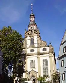 The Dreifaltigkeitskirche in Speyer is a baroque building and goes back directly to the St. Catherine's Church in Frankfurt, which was built between 1678 and 1680 by Melchior Heßler. It was built between 1701 and 1717. The master builder was the Mannheim architect Johann Peter Graber. The church is regarded as an "outstanding achievement of Protestant church architecture and a jewel of the Baroque".[9]