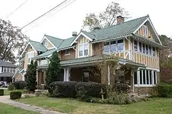 The Eagle House is a historic house at 217 Ash Street in Lonoke, Arkansas. It is a large two story Bungalow/Craftsman style house, with a cross-gable roof configuration, and an exterior of yellow brick and half-timbered stucco. A long single-story porch extends across the front, supported by brick piers and large curved brackets. The house was designed by architect Charles L. Thompson and built in 1915.[2]