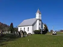 The church is a one-story framed structure, with a metal gabled roof. The exterior walls were originally weatherboarded, but this has been replaced with vinyl siding. The building has a gabled, metal roof and a concrete block foundation. The church's louvered bell tower is two stories, and contains a bell purchased from the Cincinnati Bell Foundry. The interior includes the original wooden siding, hand-painted doors and pews, and a stained glass window. The church's cemetery, which also listed as a contributing property in the historic district, contains the burials of several Earnests and other families associated with church, and at least two slave burials (known only as "Zona" and "Corby").[1]