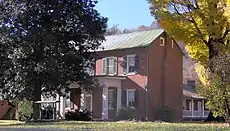 • The Henry and Peter Earnest House, a two-story brick Federal-style I-house begun in the early 19th century (or possibly earlier) and expanded over subsequent decades. Henry Earnest built the rear wing of the house around 1800, and Peter Earnest added the Federal-style front facade in 1820, creating the I-house formation, and added a smokehouse and slave quarters to the rear. An open-air porch was added to the east side of the rear wing in the 1850s, and a Colonial Revival-style portico was added to the west side in the 1920s.