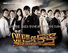 East of Eden (Korean: 에덴의 동쪽; RR: Eden-ui Dong-jjok) is a 2008 South Korean television series, starring Song Seung-heon,[1] Yeon Jung-hoon, Lee Da-hae, Han Ji-hye,[2] Park Hae-jin and Lee Yeon-hee. It was produced by Chorokbaem Media as a 47th Anniversary Special Project Drama for MBC, on which it aired from August 25, 2008, to March 10, 2009, on Mondays and Tuesdays at 21:55 for 56 episodes. The ₩25 billion drama tells the story of the brothers Dong-chul (Song) and Dong-wook (Yeon). Their fates diverge after the murder of their coal miner father, with one joining the mob and the other becoming a successful lawyer.[3][4][5]