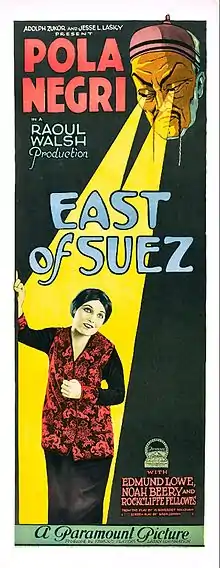 East of Suez is a 1925 American silent drama film directed by Raoul Walsh and starring Pola Negri. It is based on a play, East of Suez (1922), by W. Somerset Maugham. The film was produced by Famous Players–Lasky and distributed by Paramount Pictures.[1][2]
