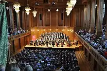 The concerts held in the historical Kaisersaal focus above all on Baroque and Viennese Classical works. Most of the concerts are performed by the Philharmonie Festiva, the orchestra of the Ebrach Festival. Additionally, there are guest performances by prestigious ensembles and orchestras like the Munich Radio Orchestra, the Symphony Orchestra of the Prague National Theatre and the Radio Symphony Orchestra of Prague, a chamber orchestra of Leipzig Gewandhaus musicians, the Soloists of the Dresden Staatskapelle, the Nürnberg Symphony, the Munich Bach Soloists, the Braunschweig Staatsorchester and the Meiningen Hofkapelle. The Ebrach Summer Music Festival also provides a platform for young, auspiciously talented new artists.
