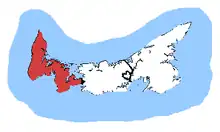 The district includes the part of Prince County located in Summerside and west of Summerside. Communities include Summerside, Alberton, Tignish, O'Leary, Miscouche and Sherbrooke. The area is 1,527 km2.