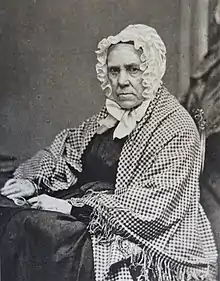 Elizabeth "Betty" Burns is said to have been born on 31 March 1791 in Leith, Midlothian, Edinburgh. Elizabeth was without doubt the daughter of Anna Park and Robert Burns.[10] Jean Armour brought up Elizabeth, as one of her own family,[11] commenting that "Our Robin should hae had twa wives."[6] She received, at the age of 21, the sum of £200 from the fund raised by her father's admirers as organised by Sir James Shaw.[11] A sum of £260 was raised by public subscription that helped her and John in their declining years.[12]