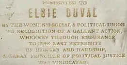 Duval had been given a Hunger Strike Medal 'for Valour' by WSPU.