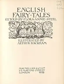 - 1 2 3 Steel, Flora Annie; Rackham, Arthur (1918). "English fairy tales". repository.maastrichtuniversity.nl. Retrieved 2023-08-21.