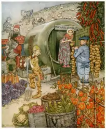 The high demand for fairy tale books was further facilitated by the emergence of many new publishing houses during the late 19th and early 20th centuries. Then the onset of World War I brought about inflation, leading to resource rationing and a shortage of paper, consequently leading to a reduced book production.[20] The aftermath of the war, later coupled with the Great Depression, further exacerbated the situation, causing a decline in demand for both fairy tales and books in general.[21] A few years later, fairy tales quickly gained popularity again. In 1937, Walt Disney, being aware of the public's desire for an escape from the turmoil of a war-torn and economically strained world, introduced an era of fairy tale movies.[22] Later, in the aftermath of World War II, fairy tales became available in paperback format. Parents invested in these stories to both amuse their children and teach valuable lessons of hope, kindness, and good over evil. Fairy tales experienced widespread recognition for their dual role as both educational tools and sources of entertainment.[23] Since the publication of English Fairy Tales by Steel in 1918, the topic of fairy tales has evolved and adapted to changing cultural and literary contexts. Over time, the fascination with fairy tales and folklore has endured, and subsequent generations have continued to find value in these traditional narratives. The perspectives on folklore, gender roles, and cultural representation have shifted, leading to numerous retellings and adaptations of the stories.[24]