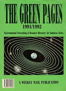 • 1991: First National Conference on Environment and Development; Environmental Monitoring Group releases a document "Towards Sustainable Development in South Africa";[4] General Magnus Malan takes over as new Minister of Water Affairs and Forestry; Bev Geach of the Weekly Mail publishes The Green Pages, a directory of environmental groups