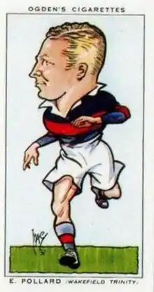 Ernie Pollard won caps for England while at Wakefield Trinity in 1932 against Wales (2 matches),[2] and won caps for Great Britain while at Wakefield Trinity in 1932 against Australia (2 matches).[3]