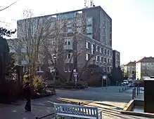 The Ernst-Neufert-Haus (sometimes also known as the Meisterbau) is a massive, brown clinker-clad residential building in Darmstadt, Hesse, designed by Ernst Neufert. It was built in 1955 as the "Ledigenwohnheim" (single men's hostel) and was part of the 'Meisterbau' (Master Builder's) programme to give Darmstadt, which had lost much of its historical substance in World War II to bombing, a new architectural emphasis.[1]
