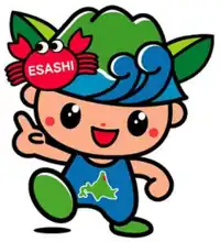 - ↑ "マスコットキャラクター誕生!!<えさっしー>". Esashi Town Chamber of Commerce.
