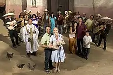 Juan tries to fix the car, but the parts he must order are slow to arrive. In the meantime, Pete helps Father Arturo prepare for the annual fiesta, which is to occur in just a few days' time. The main event of the fiesta involves a rickety old lever and pulley system wherein one lucky village child can "fly" around the plaza square. The source of the tradition dates to the village's local saint, who was said to have come to Dommatina many years ago and have been befriended by a young crippled boy when no one else would speak to him. As thanks for his kindness, the saint turned the boy into a dove, who flew around the plaza square three times, and then turned him back into a boy. Upon resuming human form the boy was miraculously cured. It is Pepillo's turn this year to fly, and he confides in Pete his belief that the saint will also cure him after his flight.