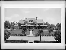 In 1889 Jones built a Victorian-style mansion as his family's residence, and named it Miramar, Spanish for "view of the ocean".[1] His wife, Georgina, planted a rose garden near the house, and also planted trees along Santa Monica's streets.[3] After John P. Jones died in 1912, his widow sold the family's mansion to King Camp Gillette, inventor of the safety razor, who leased the estate to a military academy at the end of World War I.