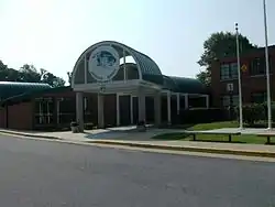 Falls Church High School (FCHS) is a high school located in West Falls Church, Virginia, in unincorporated Fairfax County.[3] While the school has a Falls Church mailing address, the school does not serve the City of Falls Church, which is served by Meridian High School. The school serves grades 9 through 12. It was relocated from its former site in downtown Falls Church to the current address, 7521 Jaguar Trail, Falls Church, Virginia 22042, in 1967.[4] Falls Church High's school motto is "Building on Our Success." The mascot for the school is a Jaguar. The school colors are dark green and white.[5] The principal is Benjamin Nowak.[6]