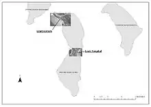 Fantome Island, also known by its Aboriginal name of Eumilli, is one of 13 islands that form part of the Great Palm Island group. It has an area of just 7.8 square kilometres (3.0 sq mi). It is located 65 kilometres (40 mi) north-north-west of Townsville. The historical occupation of the site is centred on two sections of the island - the lazaret is located on the low-lying coastal areas at the northern end of the Island; and the lock hospital site is located 3 kilometres (1.9 mi) south-east of the lazaret, at the centre of the Island. The archaeological remains of the sites have been interpreted according to historical research conducted prior to the site visit.[1][86]