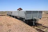 ![]() A preserved narrow-gauge bogie open wagon next to the rebuilt goods platform at Farina in 2021 | ||||||||||||||||