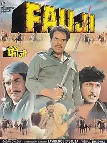 Fauji is a 1995 Indian Hindi-language action drama film directed by Lawrence D'Souza.[1] It stars Dharmendra, Raj Babbar, Farah in lead roles.[2][3]