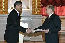1. "President Vladimir Putin accepted letters of credence from the new ambassadors of several foreign countries". The Kremlin, Moscow: Presidential Press and Information Office. 20 April 2005. Archived from the original on 28 August 2005. Retrieved 2008-10-07.