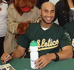 In January 2008, he was traded along with Ryan Sweeney and Gio González to the Athletics for Nick Swisher. In 2008, he pitched for Single-A Stockton, but was out for much of the 2008 and 2009 seasons after undergoing Tommy John surgery to repair an injured elbow. He finished 2009 with the AZL Athletics and was added to the Athletics' 40-man roster after the season ended.[1] De Los Santos began 2010 back with the Stockton Ports and was promoted to the Double-A Midland RockHounds where he spent most of the season. Despite finishing 2010 with a disappointing 6.54 ERA in 25 appearances with Midland, De Los Santos performed well in 2011 and quickly climbed the ranks. He was promoted to the Triple-A Sacramento River Cats on May 5.