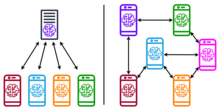In particular, orchestrator-less distributed networks are one important variation. In this case, there is no central server dispatching queries to local nodes and aggregating local models. Each local node sends its outputs to several randomly-selected others, which aggregate their results locally. This restrains the number of transactions, thereby sometimes reducing training time and computing cost.[14]