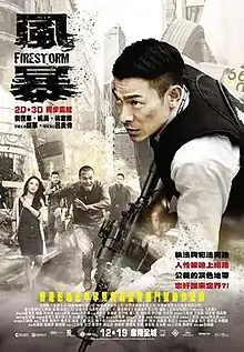 Firestorm is a 2013 Hong Kong action film written and directed by Alan Yuen, produced by and starring Andy Lau. Lau plays a hard-boiled police inspector who takes the law to his own hands in order to take down a group of violent criminals who have taken multiple innocent lives while repeatingly evading justice. The film was converted to 3D during post-production, making it the first 3D Hong Kong police action film.[4]