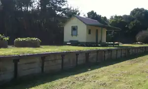 Fish Creek was a railway station on the South Gippsland line in South Gippsland, Victoria. The station was opened during the 1890s and operated until 1992 when the line to Barry Beach servicing the oil fields in Bass Strait was closed. The line was then dismantled and turned into the Great Southern Rail Trail. Fish Creek contained a rather extensive goods yard, all of which now has been demolished. The remaining platform is still in good condition.