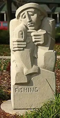 Fishing is a public art work by Karl Kahlich located in Monument Park at the Parklawn development of the Housing Authority of the City of Milwaukee, northwest of downtown Milwaukee, Wisconsin. Fishing is carved from local limestone and depicts a figure in a cap holding a large fish.[1] The sculpture was installed in 1938 as one of four public artworks based on the theme of leisure activity.[2]