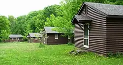 The park maintains three campgrounds with 92 sites total, 34 of which have electrical hookups. There are also three secluded walk-in sites. Visitors can rent two camper cabins or the historic group center, which sleeps up to 110 in eight bunkhouses.[15]