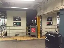 43. Cox, Jeremiah (July 22, 2009). A single High Entrance/Exit Turnstile provides the only way to leave Track 2 at this exit except during rush hour when the turnstiles are open. Retrieved January 16, 2018.