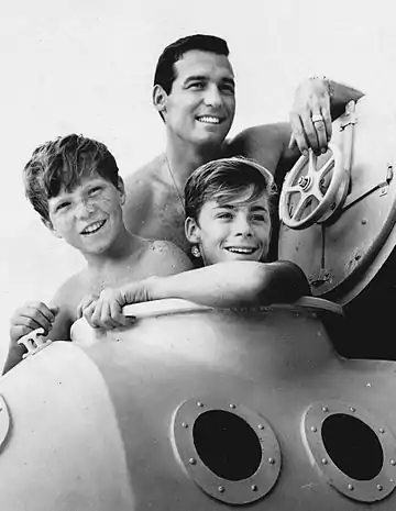 Flipper is an American television program broadcast on NBC from September 19, 1964, until April 15, 1967.[1] Flipper, a bottlenose dolphin, is the pet of Porter Ricks, chief warden at Coral Key Park and Marine Preserve (a fictional version of John Pennekamp Coral Reef State Park in Key Largo, Florida), and his two young sons, Sandy and Bud. The show has been dubbed an "aquatic Lassie", and a considerable amount of children's merchandise inspired by the show was produced during its first run.