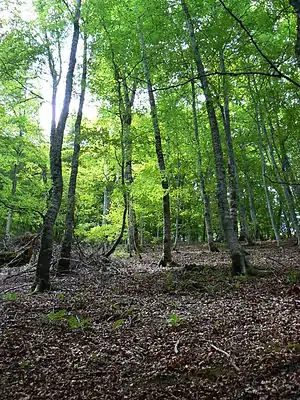 This type of forest has suffered a strong regression as a result of its exploitation for shipbuilding[6] during the sixteenth and seventeenth centuries, and for its use as fuel in forges and in the Royal Artillery Factory of La Cavada, so its sparse and fragmented distribution may endanger the persistence and recovery of this species, symbolic par excellence for the pre-Roman peoples of the northern Iberian Peninsula. The last surviving oak forests in Cantabria are located in the mountain range that separates the Saja and Besaya valleys, such as those of Rucieza and Guzaporos in Cieza, Montequemau and Rodil in Iguña, Monte Aá in Ruente or Viaña in Cabuérniga.