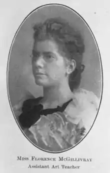 Florence Helena McGillivray was affiliated with a number of associations and groups during her lifetime. She joined the Women's Art Association of Canada where she studied painting on china with Mary Dignam, its founding president.[5] McGillivray was welcomed into groups which included the Society of Women Painters and Sculptors of New York (1917) and the Women Painters and Sculptors Art Club.[12] She continued her study of painting on china with Marshall Fry in New York in 1898 and sold her pieces later from her studio in Whitby.[5] She also gave painting classes in Whitby.[5]