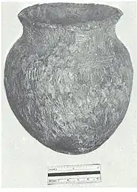 The 1944 excavations yielded several complete vessels associated with burials, which aided in the analysis. The pottery was sorted using the typology introduced by James Fitting based on the study of pottery at the nearby Michigan site of Riviere Au Vase.[5]
