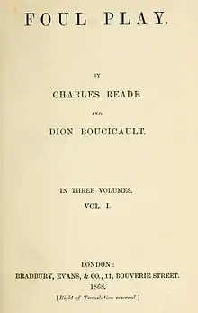 Foul Play is an 1869 melodramatic or sensation novel by the British writer Charles Reade. In Victorian Britain a clergyman is wrongly convicted of a crime and transported to Australia. He is shipwrecked with an aristocratic woman on the hitherto uncharted "Godsend Island" in the South Pacific. Eventually he is rescued and vindicated of his crime.